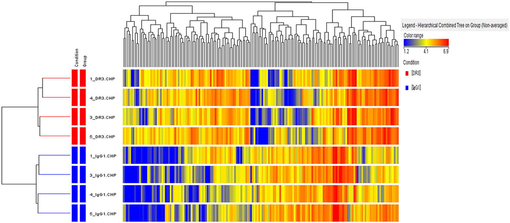 Results: Microarray data analysis revealed that DR3 up-regulated or down-regulated the expression of various genes in RA-FLS (Figure). The function of regulated genes included protein-L-isoaspartate (D-aspartate) O-methyltransferase activity, carboxyl-O-methyltransferase activity, protein carboxyl O-methyltransferase activity, regulation of cilium assembly, O-methyltransferase activity, regulation of plasma membrane bounded cell projection assembly, regulation of cell projection assembly, regulation of organelle assembly, protein methyltransferase activity, and S-adenosylmethionine-dependent methyltransferase activity. The most up-regulated 2 genes by DR3 were KIAA1109 (KIAA1109), and adhesion G protein-coupled receptor A3 (ADGRA3). The most down-regulated 2 genes by DR3 were RNA exonuclease 2 (REXO2), and family with sequence similarity 120A (FAM120A).