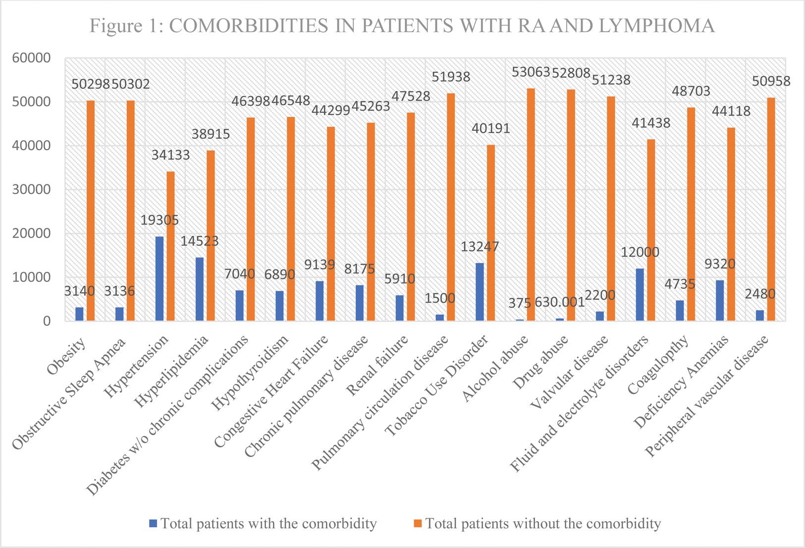 Results: Identified over a decade, from 2009 to 2019, a total of 53,439 patients had a primary diagnosis of RA along with secondary diagnoses of Hodgkin’s or non-Hodgkin’s lymphoma. Figure 1 displays the baseline comorbidities of the cohort. Figure 2 illustrates the trends in lymphoma prevalence.