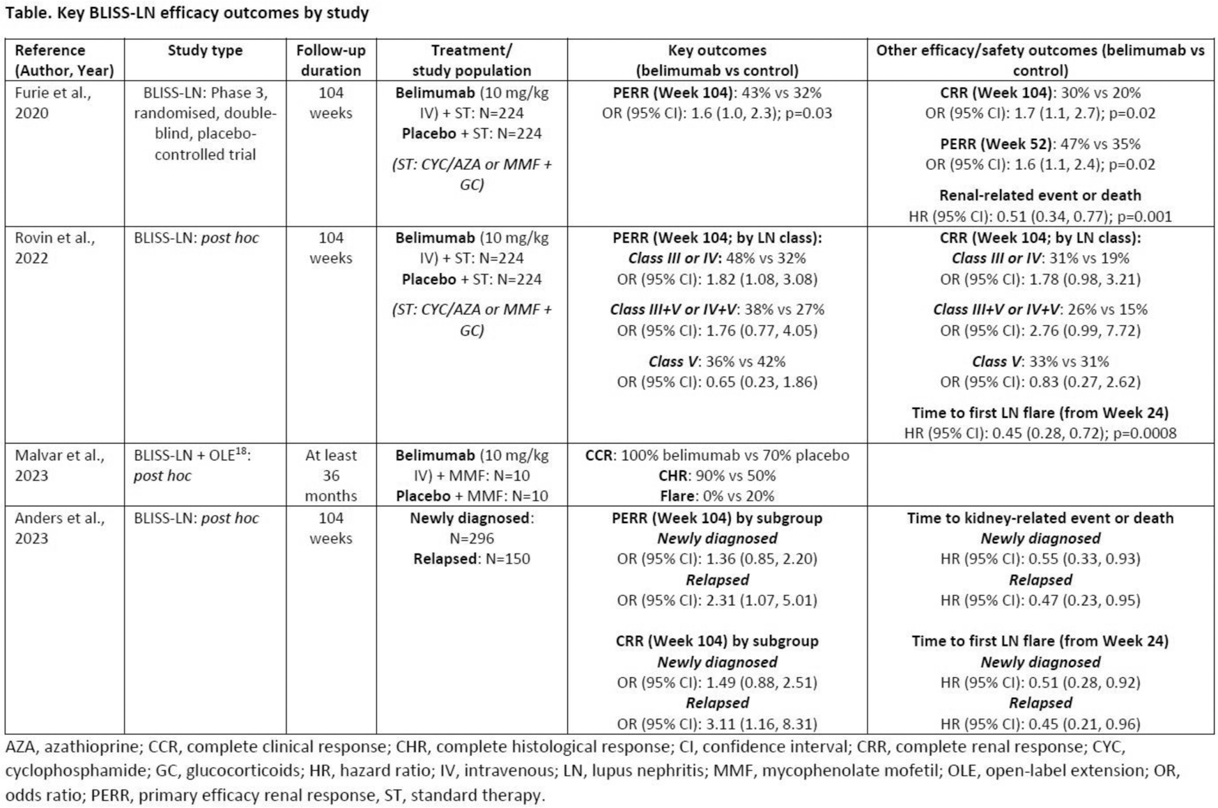 Methods: Narrative review guided by LN experts, inclusive of recent publications related to Phase 3 trials and real-world studies of belimumab therapy in LN.