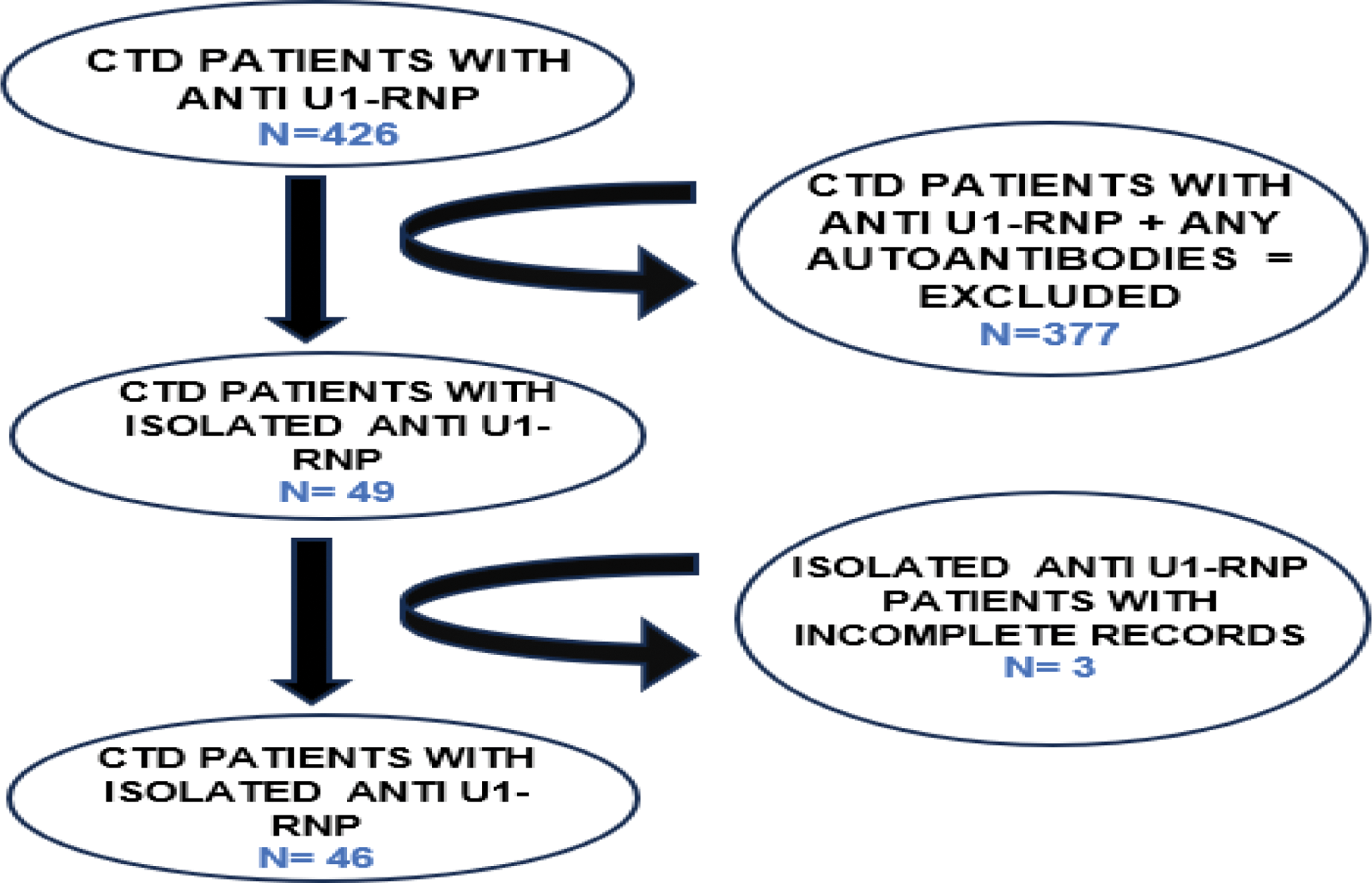 Background: The U1 small nuclear ribonucleoprotein particle (snRNP) is one of five snRNPs constituting the mammalian spliceosome. Its unique structural features, such as RNA-binding motifs, B and T-cell epitopes, and a distinct stimulatory RNA molecule, render it particularly vulnerable to autoimmune targeting [1]. Anti-U1 snRNPantibodies are typically associated with mixed connective tissue disease (MCTD) but are also observed in systemic lupus erythematosus (SLE), systemic sclerosis (SSc), and inflammatory myositis (IIM). The clinical relevance of these autoantibodies remains a topic of ongoing research. Key questions persist regarding the pathogenicity of anti-RNP antibodies, the specific clinical manifestations driven by the anti-RNP immune response, and the underlying mechanisms leading to anti-RNP autoimmunity . While these antibodies are commonly present alongside other autoantibodies, isolated anti-U1 snRNP positivity —defined as the presence of anti-U1 snRNP without accompanying specific autoantibodies for SLE, SSc, or other autoimmune conditions—represents a rare and distinct clinical entity. Existing literature on isolated anti-U1 snRNP positivity remains limited, with most studies focusing on its occurrence within broader autoimmune disorders. However, emerging evidence suggests that isolated anti-U1 snRNP positivity may exhibit a unique clinical phenotype.
