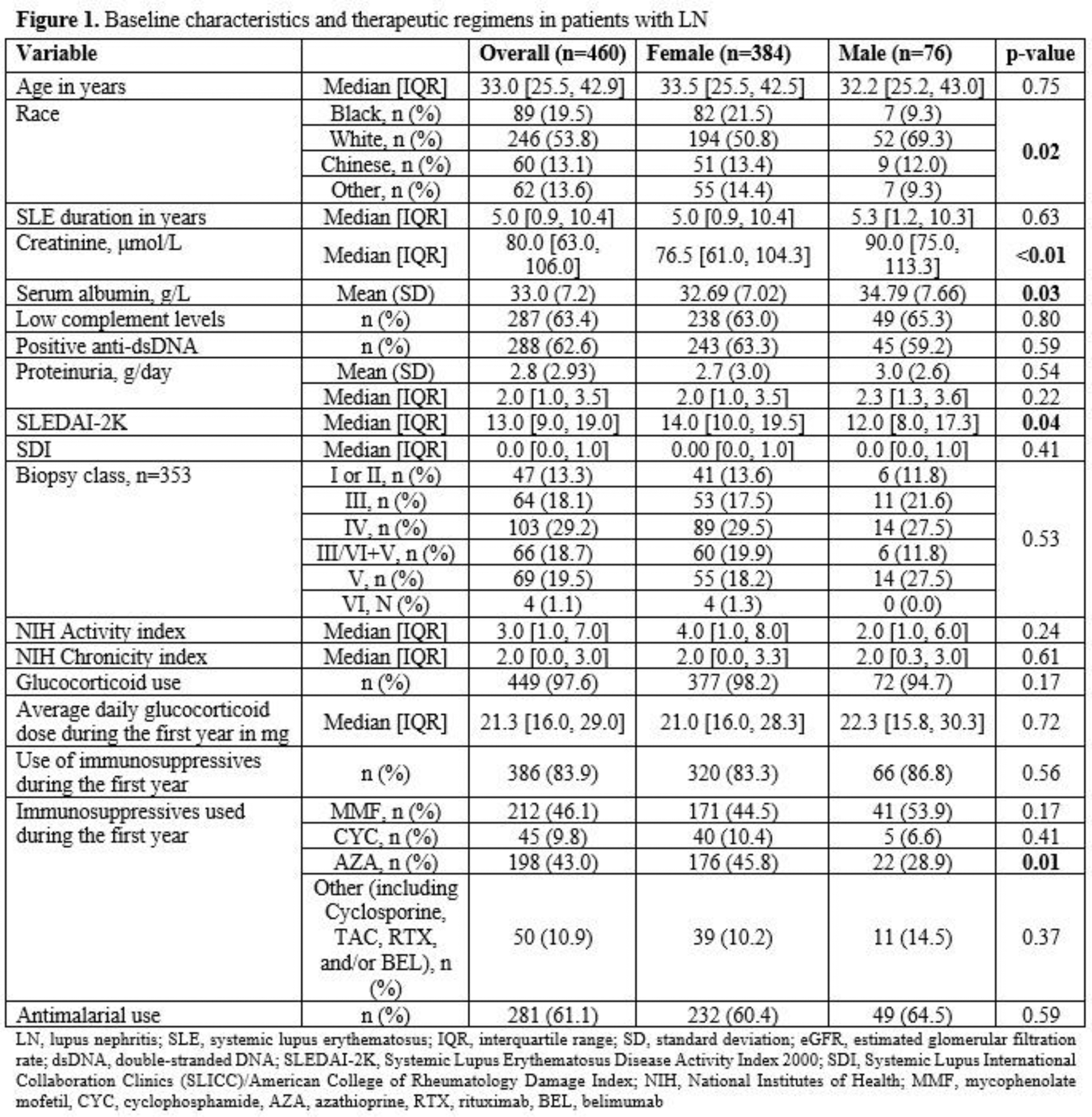 Objectives: We aimed to investigate biologic sex-based differences in the accrual of both extra-renal and renal damage in a cohort of LN patients.