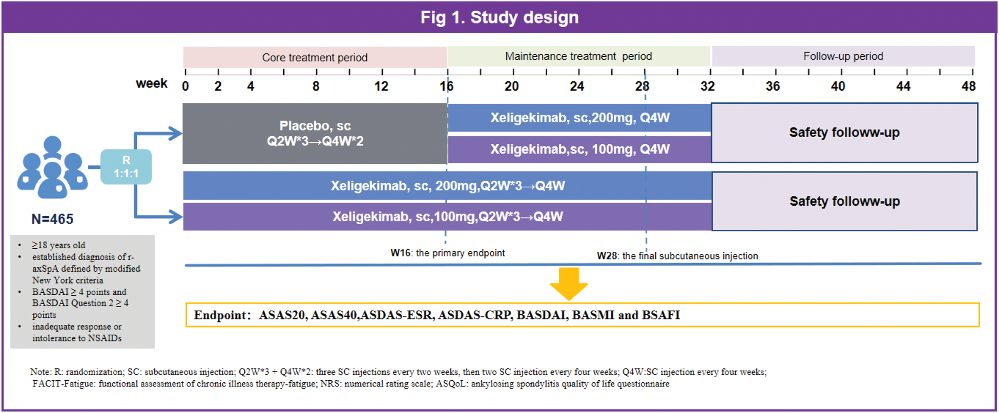 Objectives: This phase 3 study aimed to determine the efficacy and safety of Xeligekimab for treating Chinese patients with active r-axSpA.