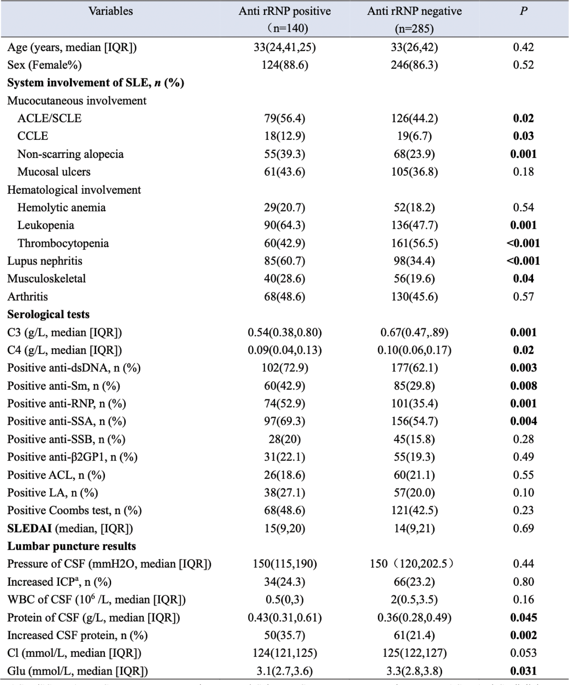 Conclusion: Anti-rRNP positive patients exhibited distinct clinical, serological, and cerebrospinal fluid characteristics, may reflecting unique phenotypic features within NPLE.