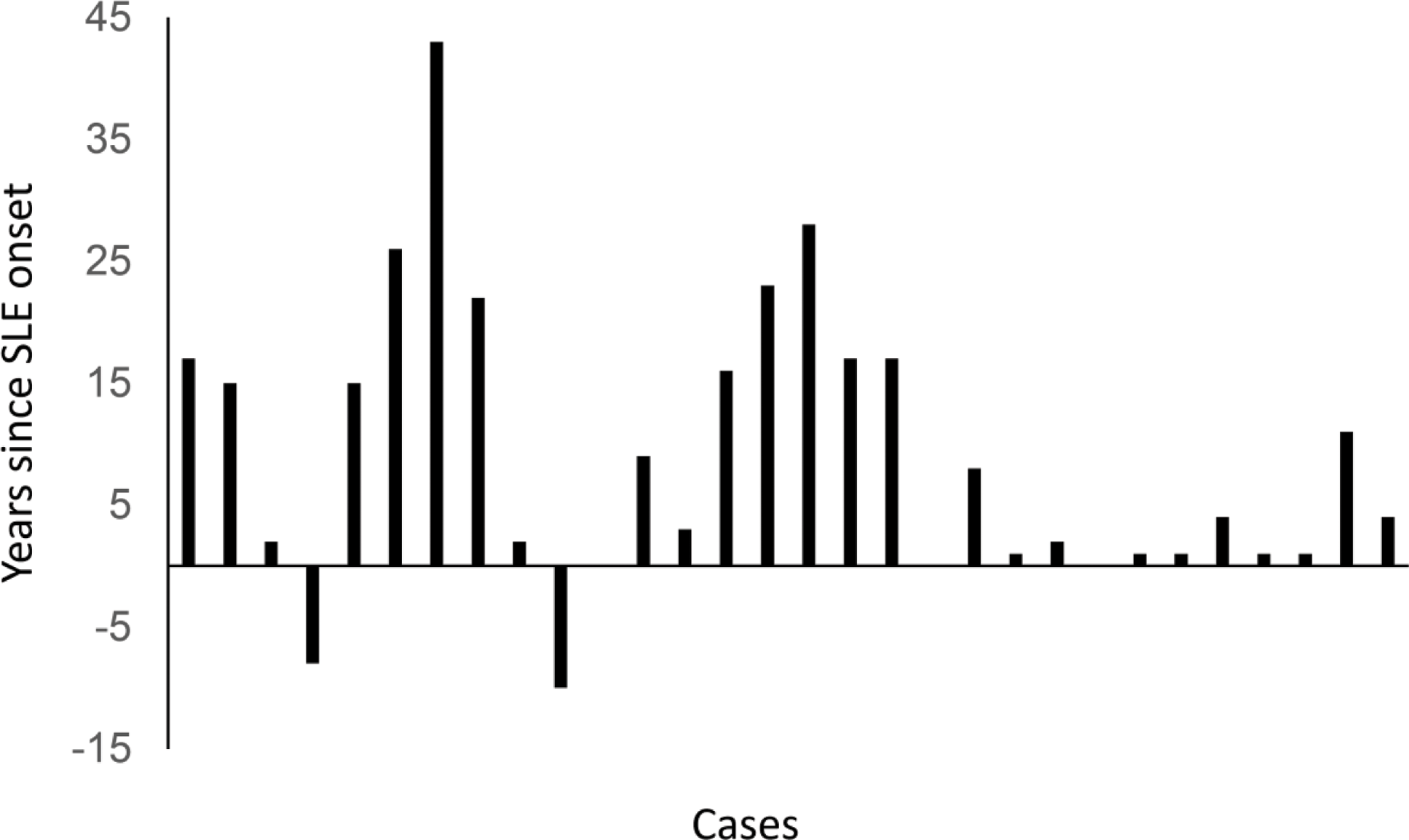 Time distribution of herpes zoster occurrence in relation to SLE onset